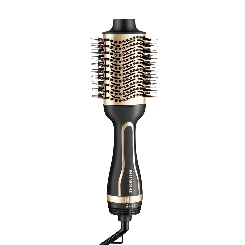 Escova Secadora da Mondial é um produto inovador no mercado brasileiro, é tudo que você precisa! Você terá o poder do secador aliado à praticidade da escova em um único produto. Fácil de usar, você pode secar seu cabelo enquanto escova obtendo cabelos lisos ou modelados, livres do frizz e da estática, com cutículas perfeitamente alinhadas obtendo resultado de salão. Ideal para a mulher moderna, com ela você pode elaborar looks para o dia a dia ou eventos à noite em poucos minutos com alto desempenho e tecnologia. A Escova Secadora da Mondial é a primeira escova de cabelo com cerdas em 360º que seca e alisa ao mesmo tempo de maneira prática e fácil de usar. Com seu design revolucionário, ela tem saídas de ar com fluxo intenso para secar os cabelos enquanto modela, cerdas mistas flexíveis com pontas arrendondadas que deslizam suavemente no cabelo desembaraçando e alinhando os fios sem danificá-los, gerador de íons para eliminar o frizz, garantindo mais brilho e maciez aos cabelos, cabo giratório 360º proporcionando total autonomia de movimentos, botão Liga / Desliga e Seletor de Temperatura com 2 opções de temperaturas quentes e Ar Frio localizado em posição pensada para você não desligar o aparelho de modo indesejado durante o uso, 1200W de potência garantindo o alto desempenho de um secador e escova quadrada que atua em uma maior área para uma secagem e alisamento rápido. A Mondial é a escolha de milhões de consumidores.